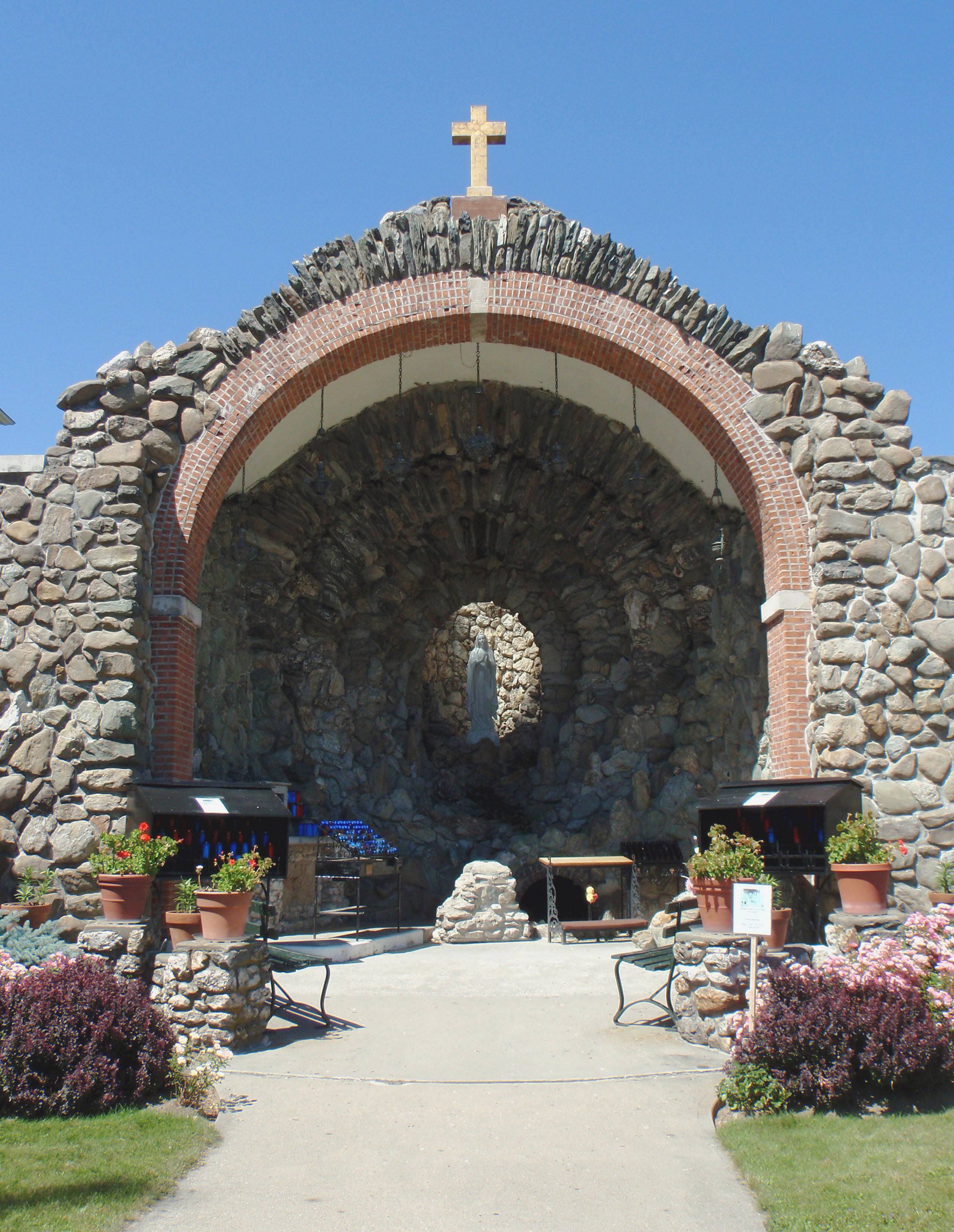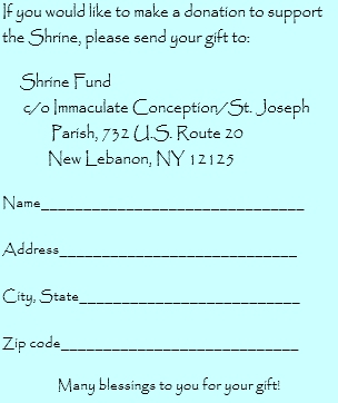 In 1928 Fr. John B. LeFebvre arrived at Immaculate Conception, and seeing the marked resemblance of the countryside to that of Lourdes in France, decided to build a grotto like the one in Lourdes. In little more than a year the vision became a reality. In July of 1929 the Shrine of Our Lady of Lourdes was dedicated in New Lebanon with better then 9,000 people in attendance. The Shrine is kept up by people who volunteer from the parish, using donations from those who appreciate this lovely devotional place.